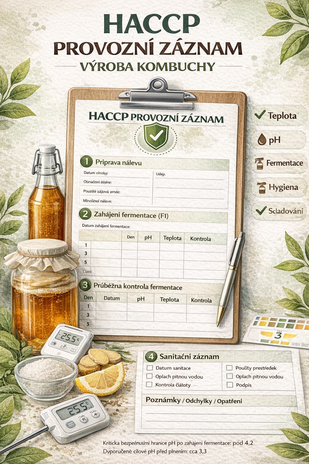 Kritická bezpečnostní hranice pH po zahájení fermentace: pod 4,2