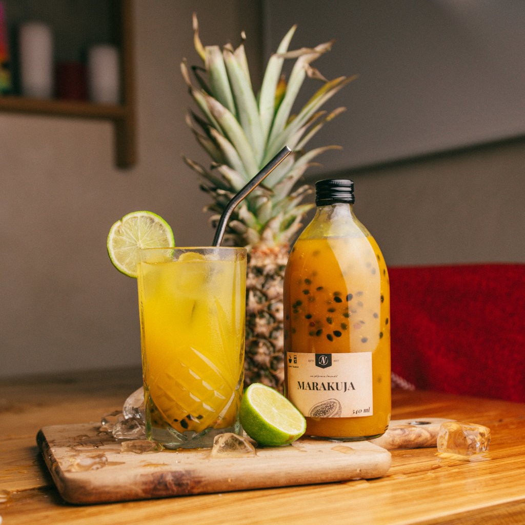 Složení: mango 48 %, marakuja 24 %, cukr , šťáva z citrónů, vanilka.
