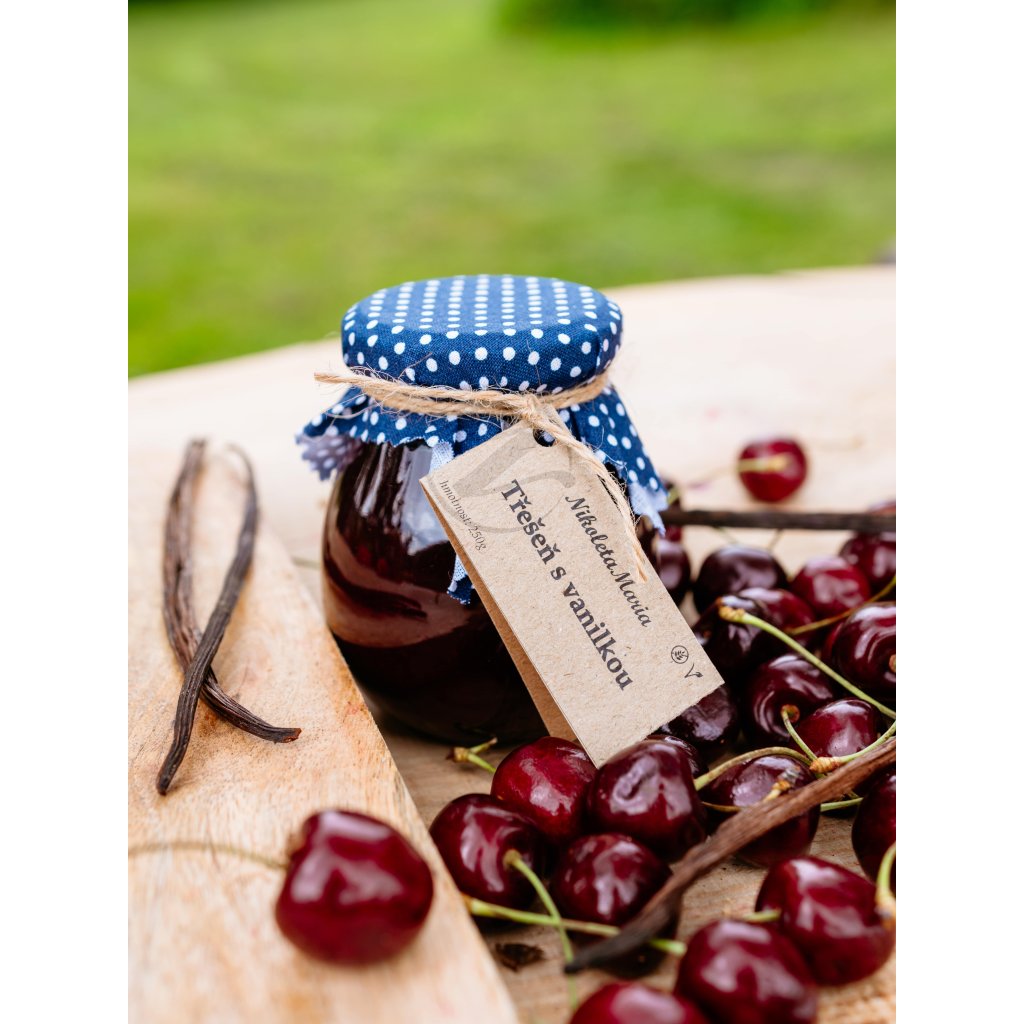Třešeň s vanilkou – Marmoleta, sladká chuť třešní s jemným nádechem pravé vanilky, ideální pro dezerty, pečivo nebo k sýrům.