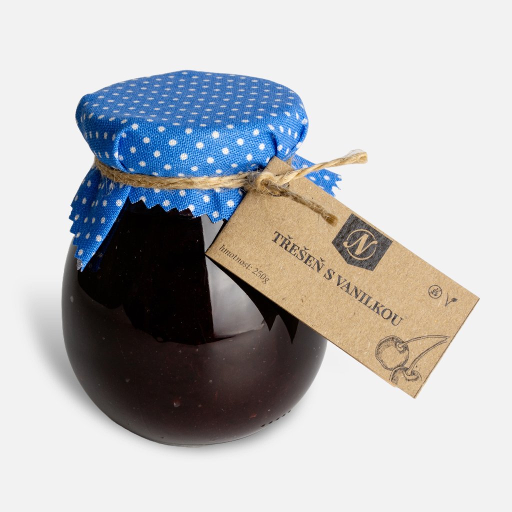 Složení: třešeň (84 %), cukr, šťáva z citronů, citrusový pektin, vanilka (0,05 %).