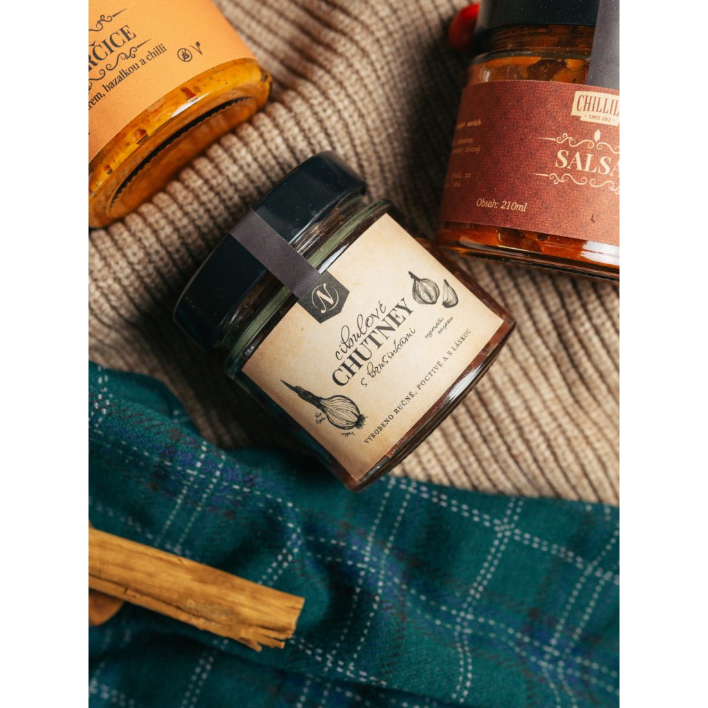 - 190 g Cibulové chutney s brusinkami: Sladké a aromatické chutney, které vyniká na vánočním stole a skvěle se hodí k masu, sýrům nebo jako příloha k pečivu.